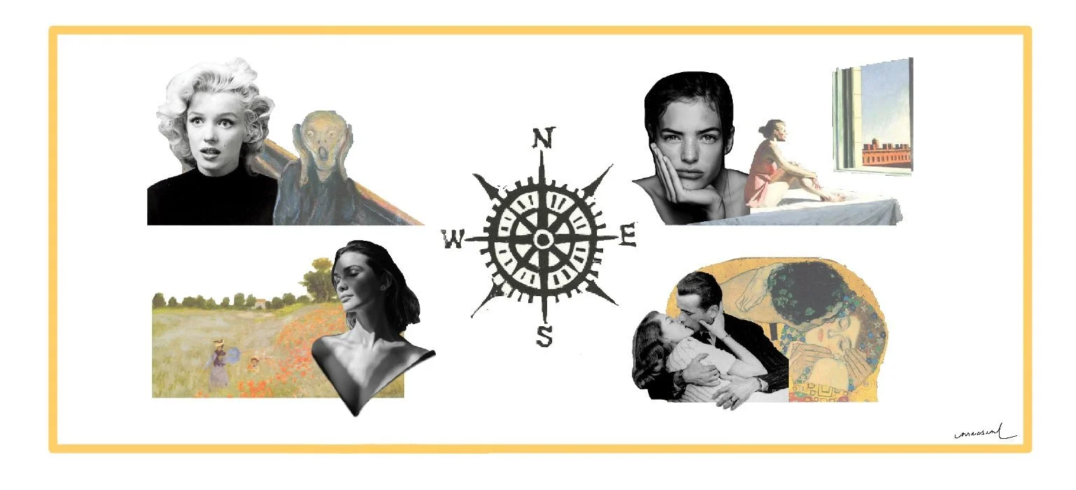 Te voy a contar como se me ocurrió juntar las emociones con el arte. Un día, organizando la sesión de un niño decidí hacerlo de una manera diferente. Recordé que, para él, el arte es una manera de expresarse, al igual que lo es la escritura, para muchos otros. Se me ocurrió elegir distintas obras de arte de Monet, Picasso, Sorolla, Munch, Klint, Renoir, Goya… Estuve durante una semana recopilando obras de arte que yo conocía, buscando el significado del autor al pintarlas y observando qué cosas resonaban en mí. Cuando tuve el material preparado, se lo enseñé. Juntos teníamos que intentar entender la obra, observándola y haciéndonos preguntas. Se me ocurrió seguir una técnica que utiliza las coordenadas de una brújula: N: normalmente, el Norte, y para nosotros Necesidad, ¿qué necesito saber de la obra?; S: el sur lo cambiamos por el ¿qué nos sugiere?; la E del Este por el ¿qué nos entusiasma? ¿Qué nos llama la atención?; y la O del Oeste por ¿qué obstáculos vemos que no nos permiten entenderla del todo?